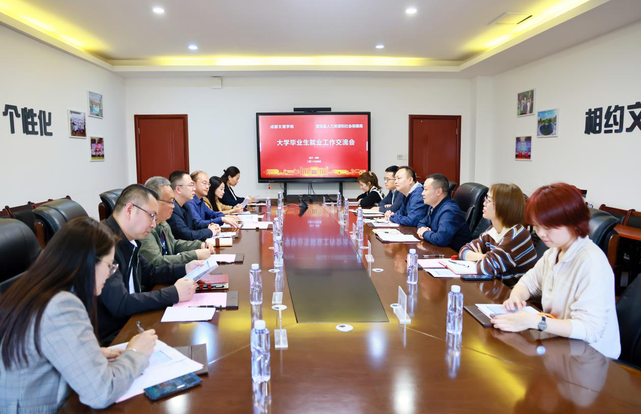 成都文理学院与蓬溪县人力资源和社会保障局毕业生就业工作交流会议在学校行政楼六楼会议室顺利举行,实现人才培养与地方需求精准对接。