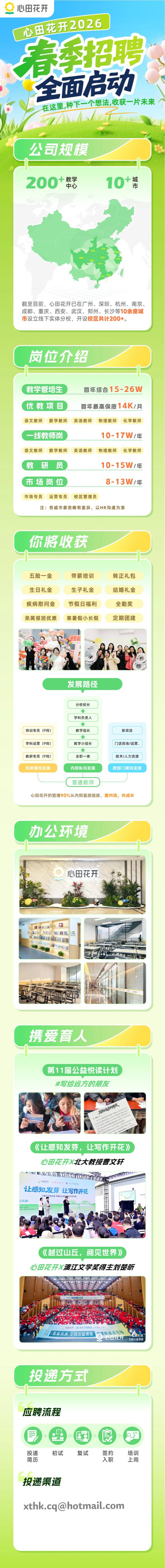 (2026年校53号)公司简介 心田花开,旗下拥有线下事业部、网校事业部和双师课堂三大业务板块,招聘对象 2026届应届毕业生招聘图文。