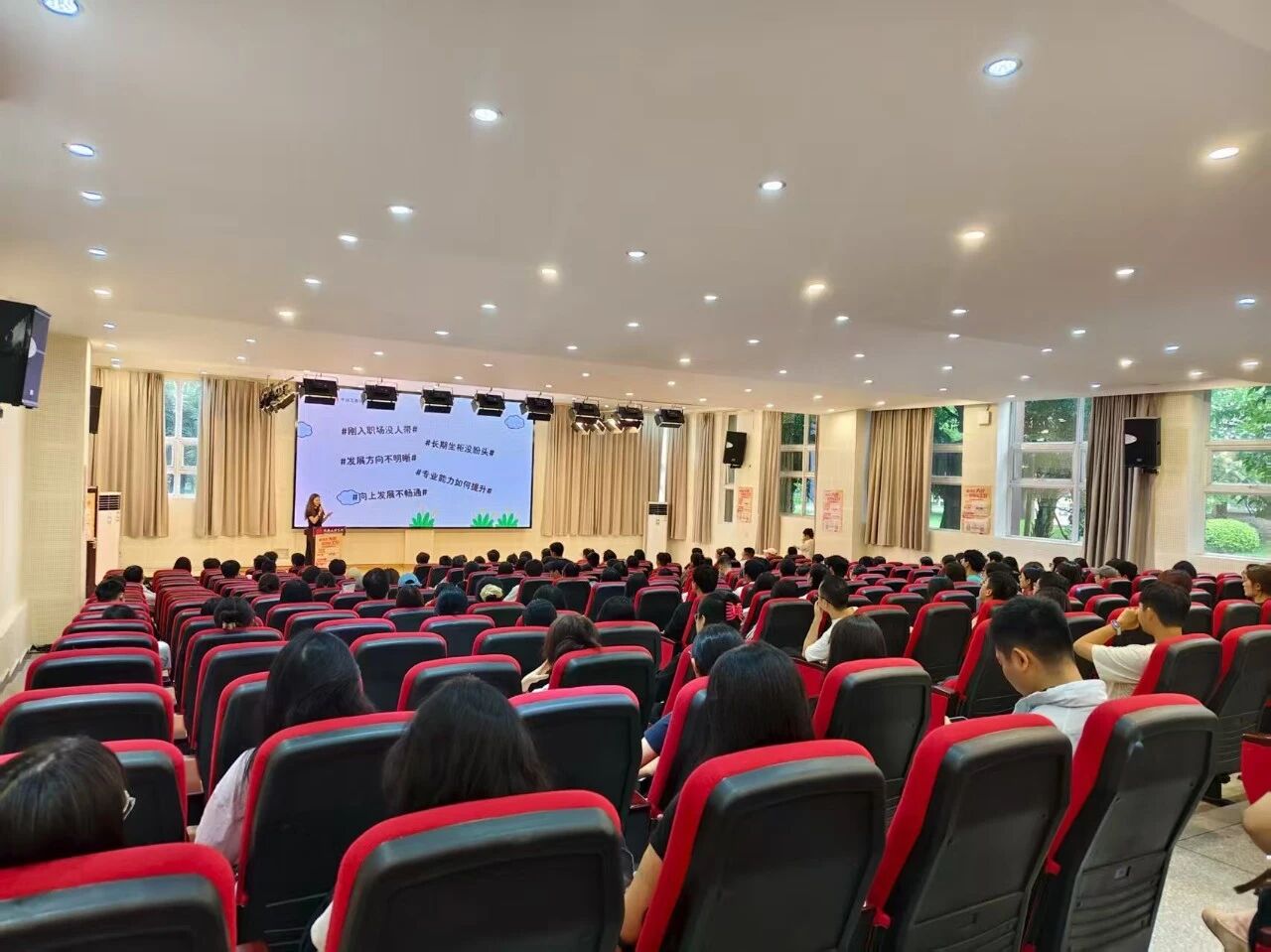 随后,广元、广安、泸州、遂宁、雅安、德阳等分行代表进行宣讲并对同学们发出邀约。分行代表中的2023届文理校友还结合自身经历对学弟学妹们进行积极地就业指导。