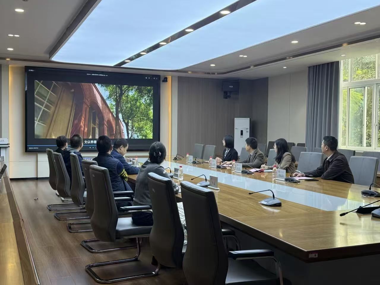 仪式开场后,我校宣传片正式播放,全面展现了学校近年来在人才培养、学科建设、社会服务等方面的丰硕成果,让赤道人培训学校一行直观了解我校的应用型办学特色与育人理念。